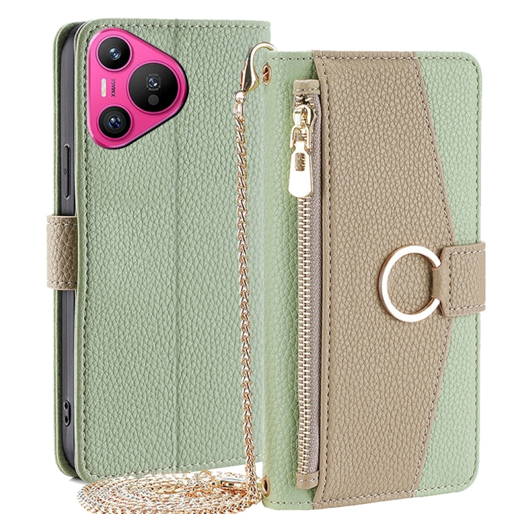 Funda de Cuero Crossbody para Huawei Pura 70 5G con Textura Litchi (Verde)