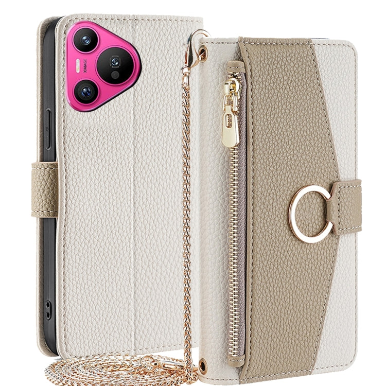 Funda Cruzada de Cuero con Textura Litchi para Huawei Pura 70 5G (Blanco)