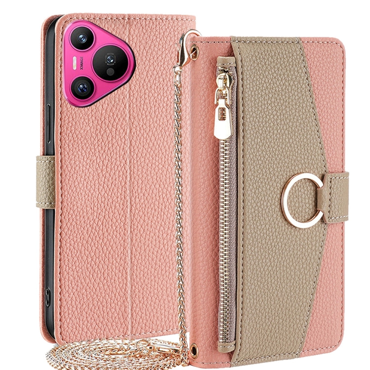 Funda para Huawei Pura 70 5G de Cuero con Textura Litchi Cruzada (Rosa)