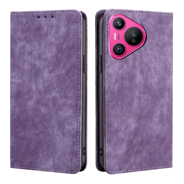 Funda de Cuero Magnética para Huawei Pura 70 con Cepillo Antirrobo RFID (Púrpura)