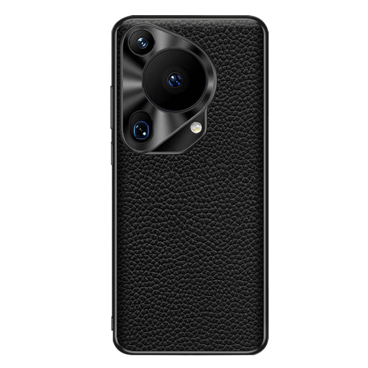 Funda para Huawei Pura 70 con Textura Litchi de Cuero Ultra Genuino (Negro)