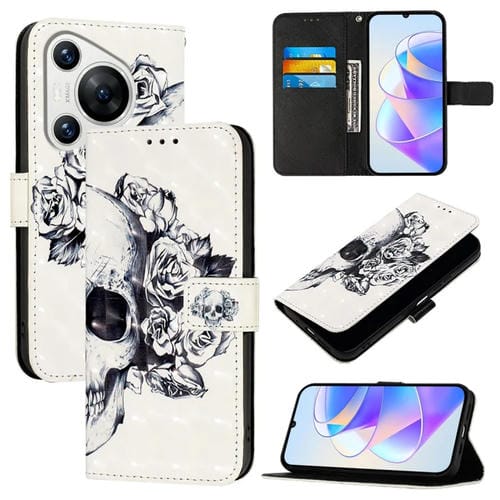 Funda para Huawei Pura 70 de Cuero con Tapa Horizontal y Pintura 3D (Calavera)