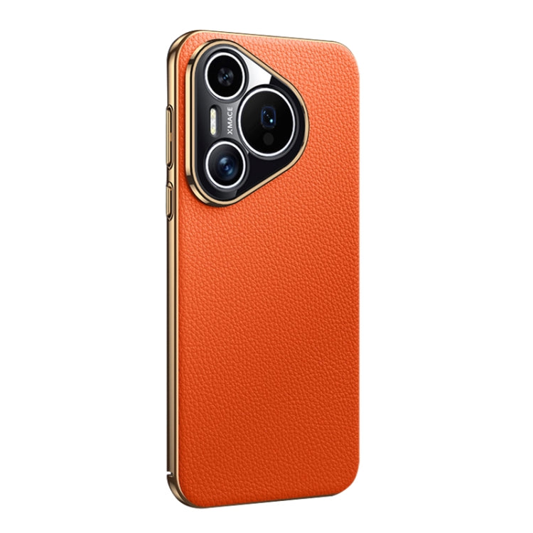 Funda para Teléfono Huawei Pura 70 de Cuero Genuino con Textura Litchi (Naranja)