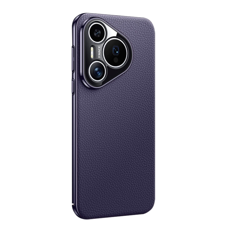 Funda para Huawei Pura 70 de Cuero Genuino con Textura Litchi (Púrpura Oscuro)