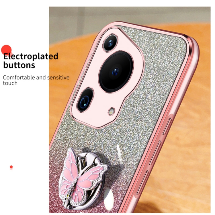 - 1x Funda para Huawei Pura 70 TPU con Soporte de Mariposa y Brillo Degradado Ultra Plateado (Rosa)