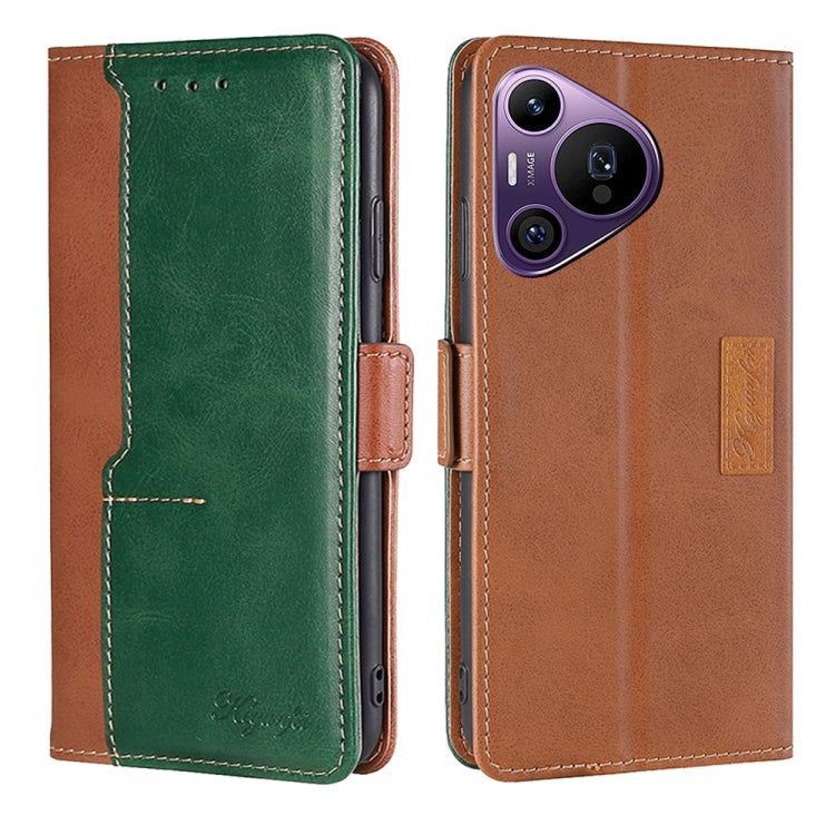 Funda de Cuero para Huawei Pura 70 Pro / 70 Pro + 5G con Hebilla Lateral (Marrón Claro + Verde)
