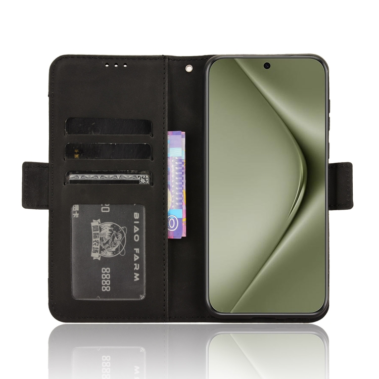 - 1x Funda de Cuero para Huawei Pura 70 Pro / 70 Pro+ con Ranuras para Tarjetas y Textura de Becerro (Negro)