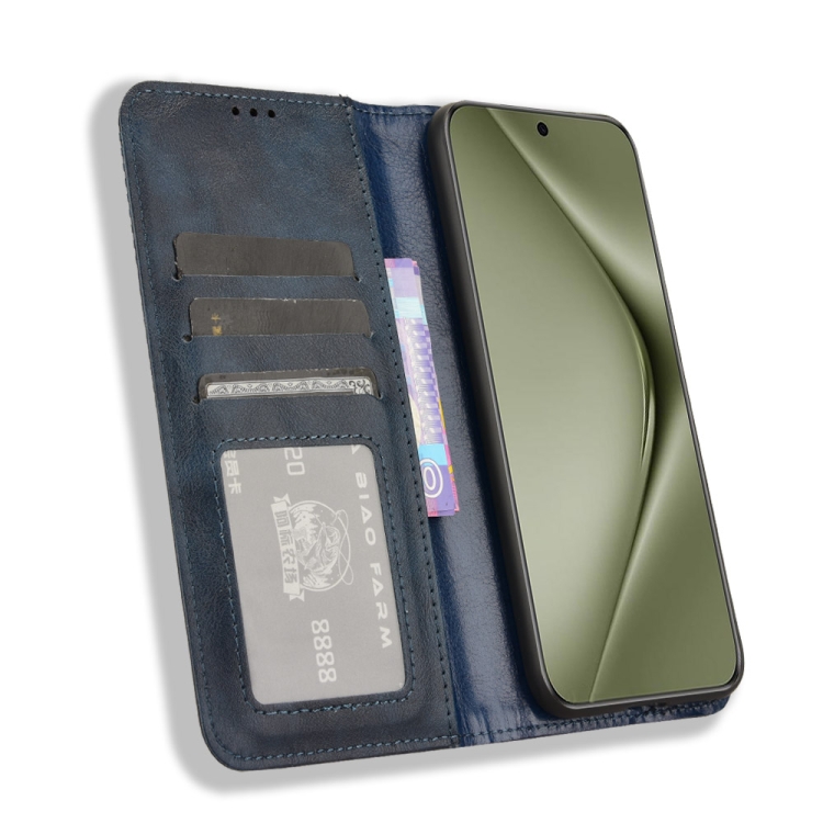 Funda para Huawei Pura 70 Pro / 70 Pro+ de Cuero con Textura Retro y Hebilla Magnética (Azul)