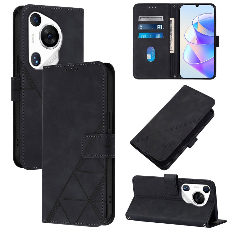 Funda de Cuero para Huawei Pura 70 Pro Crossbody con Tapa en Relieve 3D (Negro)