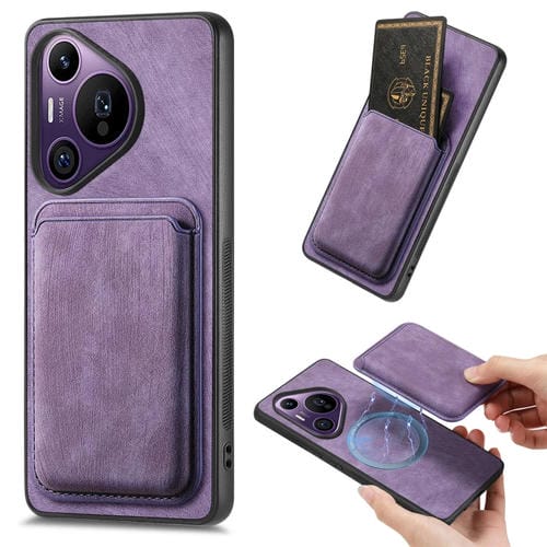 Funda de Teléfono Magnética Huawei Pura 70 Pro con Bolsa de Tarjeta de Cuero Retro (Púrpura)