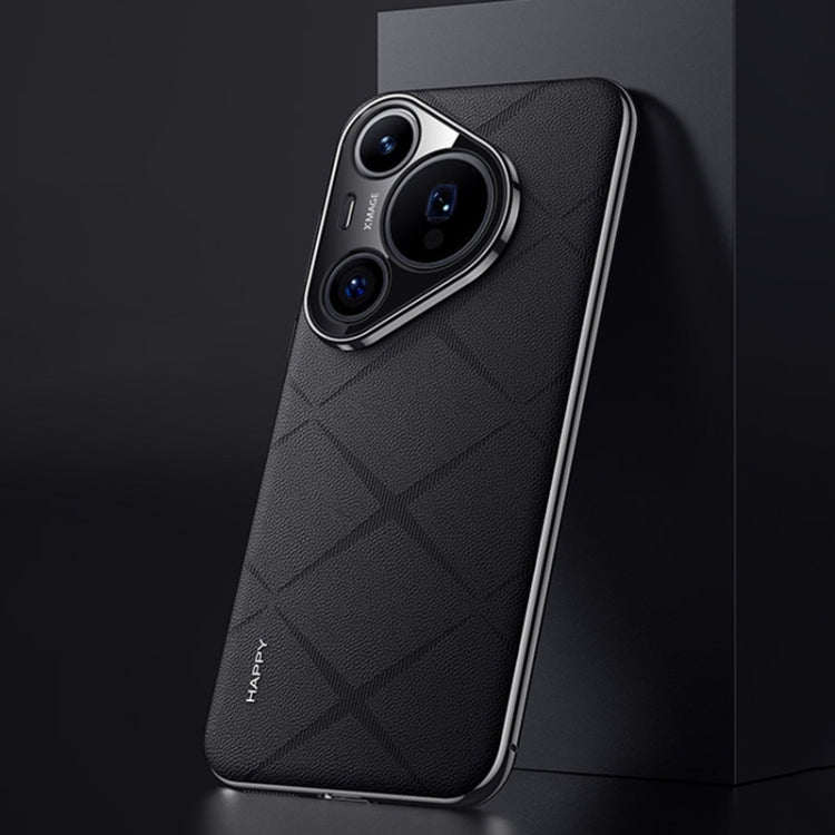 Funda de Cuero Liso para Huawei Pura 70 Pro y Pro+ Teléfono PC (Negro)