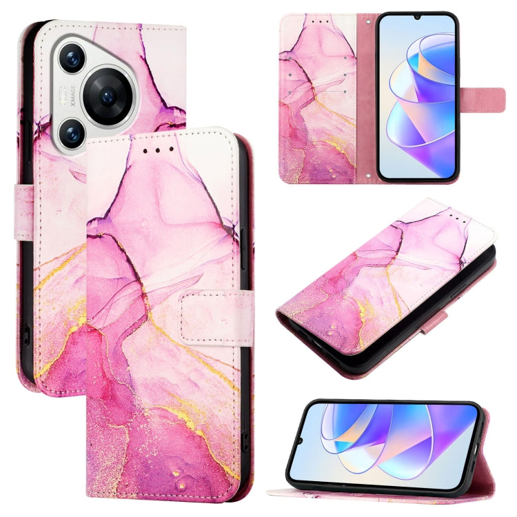 Funda de Cuero con Tapa para Huawei Pura 70 Pt003 con Patrón Mármol (Rosa Púrpura Dorado)