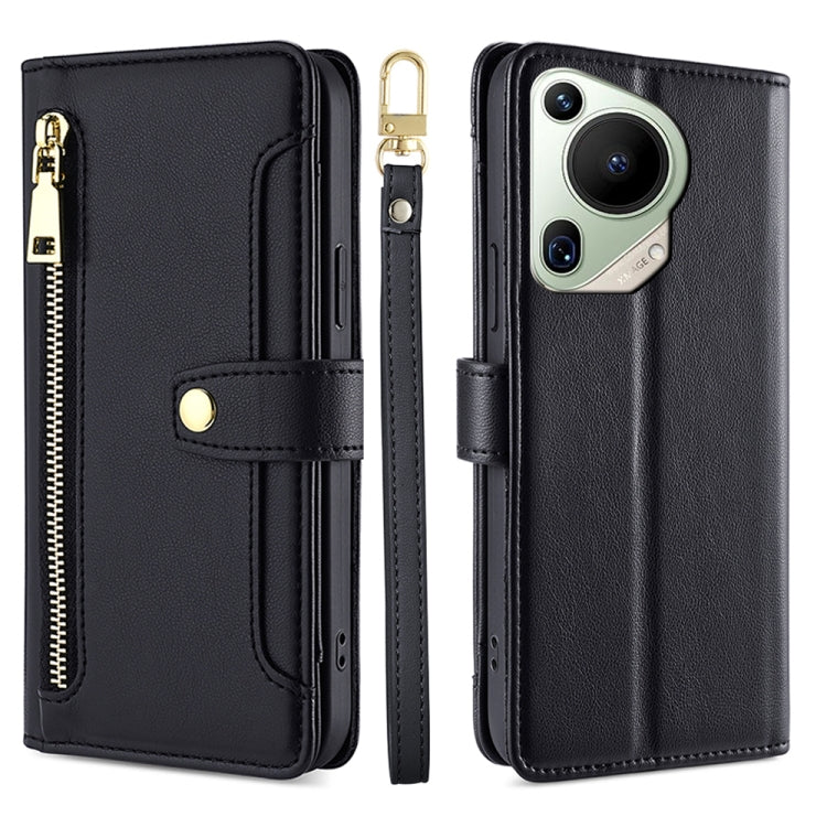Funda de Cuero para Huawei Pura 70 Ultra 5G con Billetera y Cremallera (Negro)