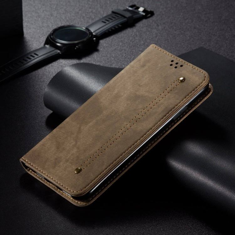 Funda de Cuero para Huawei Pura 70 Ultra con Textura Denim (Caqui)