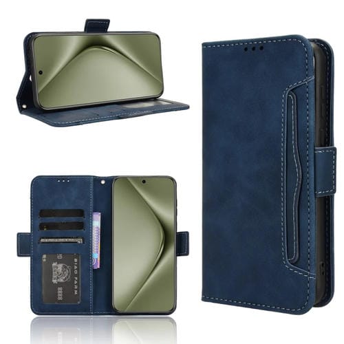 • 1x Funda de Cuero Huawei Pura 70 Ultra Skin Feel con Textura de Becerro y Ranuras para Tarjetas (Azul)