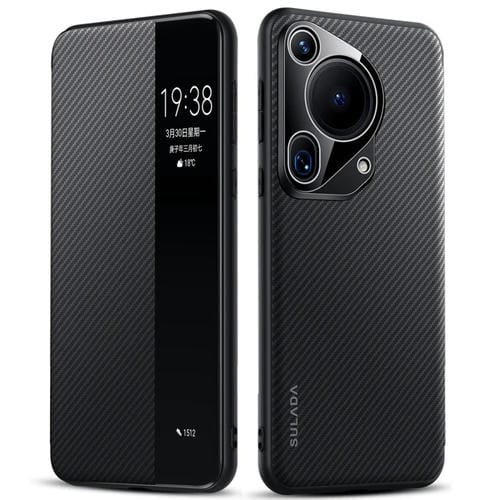 Funda de Cuero para Huawei Pura 70 Ultra Kevlar 600D con Ventana Inteligente (Negro)