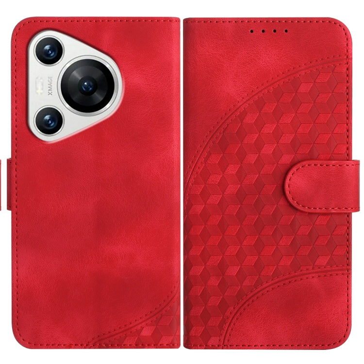 Funda de Cuero Huawei Pura 70 Yx0060 con Relieve y Cabeza de Elefante con Cordón (Rojo)