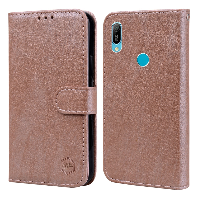 Funda para Huawei Y6 2019 PU + TPU Textura de Cuero Aceitoso (Champán)
