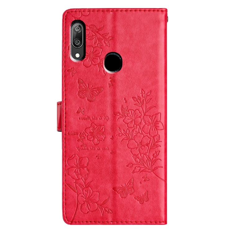 Funda para Huawei Y7 2019 de Cuero con Relieve de Flor y Mariposa (Rojo)