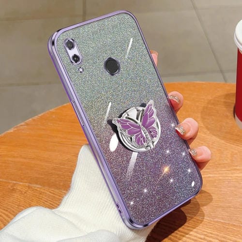 Funda TPU para Huawei Y7 2019 con Soporte de Mariposa y Brillo Degradado (Púrpura)