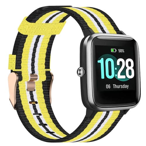 Banda de Reloj Trenzada de Nylon para Id205 19mm (Negro+Amarillo)