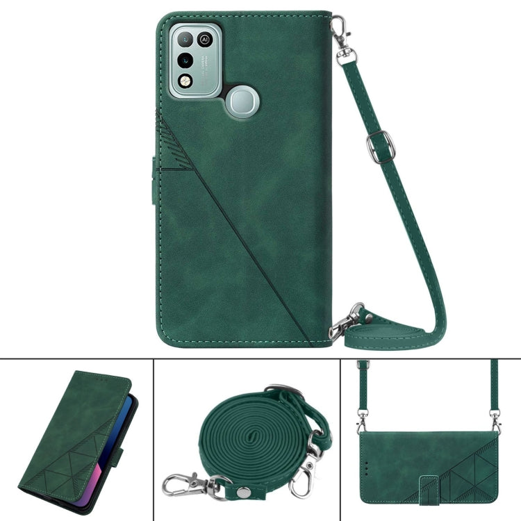 Funda Telefónica Cuero para Infinix Hot 10 Play Crossbody 3D Grabado en Relieve (Verde Oscuro)
