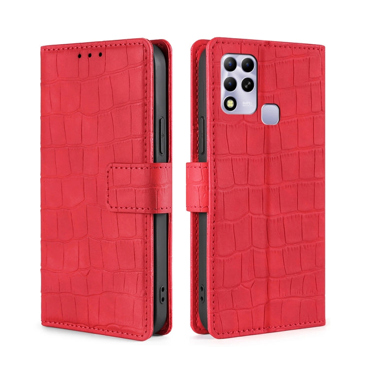 Funda de Cuero para Infinix Hot 11 con Cierre Magnético y Textura Russian Skin Cocodrilo (Rojo)