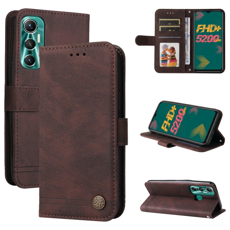 Skin SenTFle Life Button de Metal y Cuero para Infinix Hot 11 (Marrón)