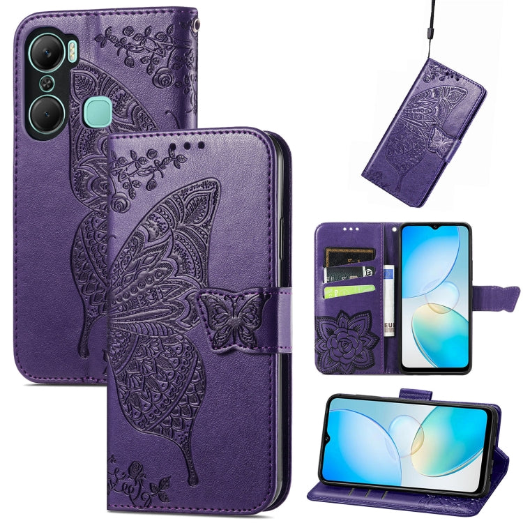 Estuche para Teléfono Infinix Hot 12 Pro Butterfly Love Flower Cuero En Relieve (Púrpura)