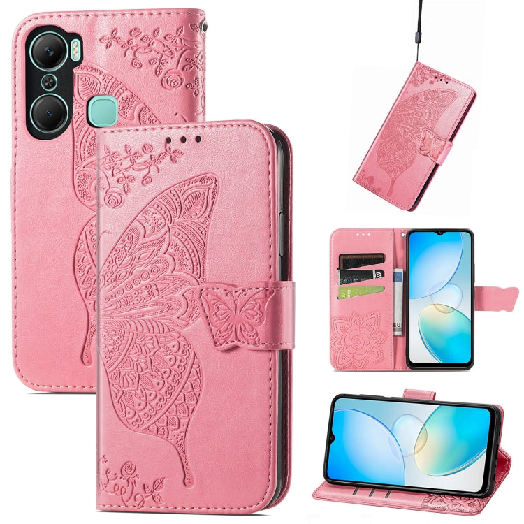 Estuche para teléfono Infinix Hot 12 Pro Butterfly Love Flower de cuero en relieve (Rosa)