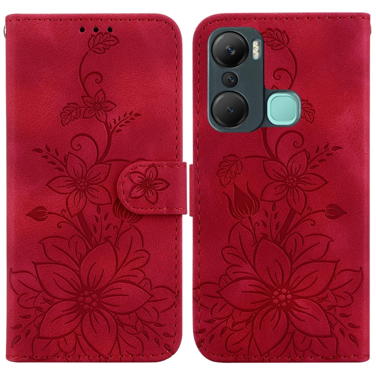 Estuche de Cuero en Relieve para Infinix Hot 12 Pro Lily (Rojo)