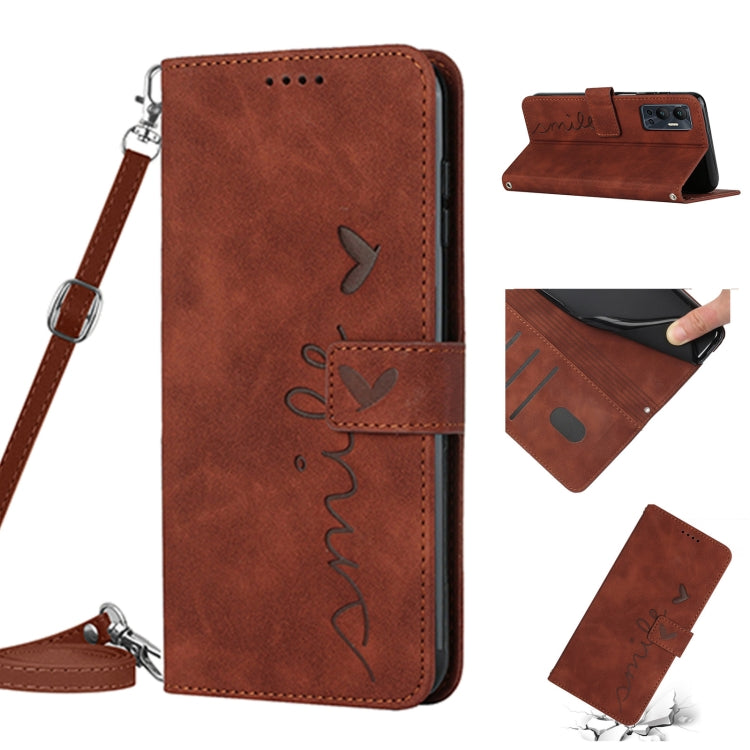 Funda de Cuero para Infinix Hot 12 con Cordón y Diseño Heart Pattern (Marrón)