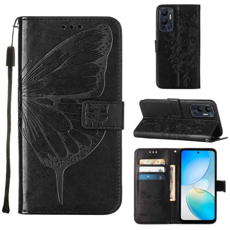 Estuche para Infinix Hot 12 X6817 de Cuero con Tapa de Mariposa en Relieve (Negro)