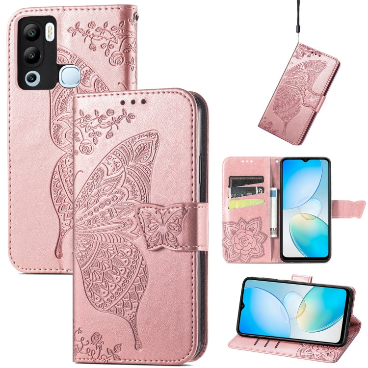 Estuche para teléfono Infinix Hot 12I Butterfly Love Flower Cuero en Relieve (Oro Rosa)
