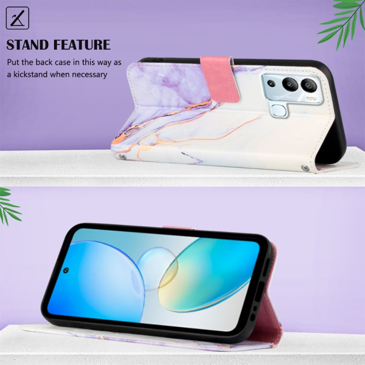 Funda de Cuero con Tapa para Infinix Hot 12I X665 Pt003 Patrón de Mármol (Blanco Púrpura)
