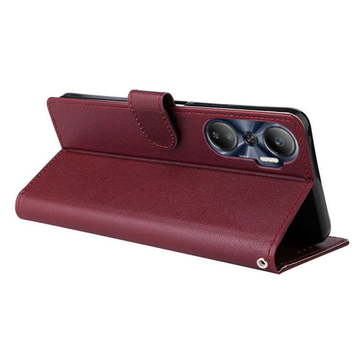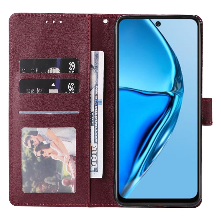 Funda de Cuero para Infinix Hot 20 4G con 3 Ranuras para Tarjetas (Rojo Vino)
