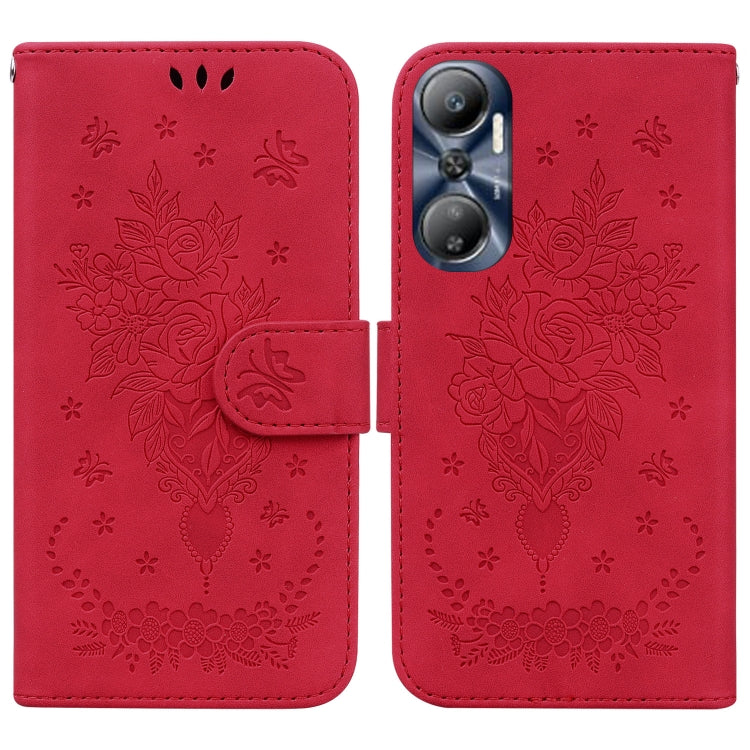 Estuche para Teléfono Infinix Hot 20 Butterfly Rose Cuero En Relieve (Rojo)