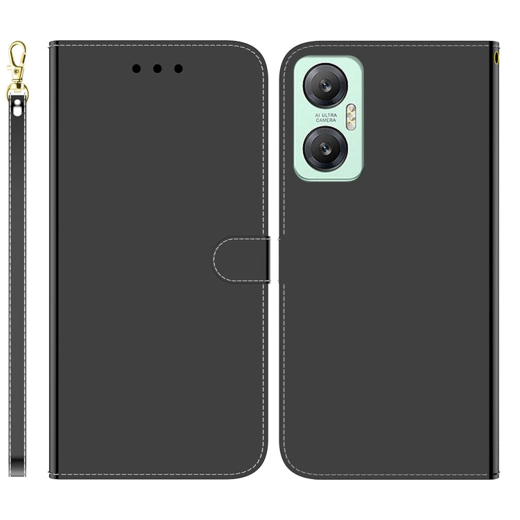 Estuche para Teléfono Infinix Hot 20 de Cuero con Superficie de Espejo Imitado (Negro)