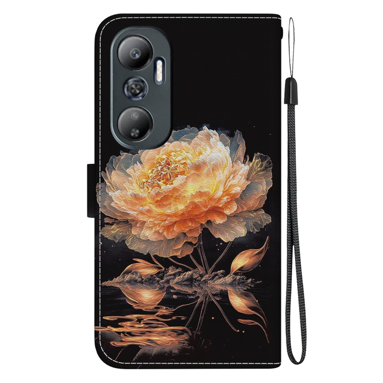 Funda de Cuero para Infinix Hot 20 con Dibujo Coloreado y Textura de Cristal (Peonía Dorada)