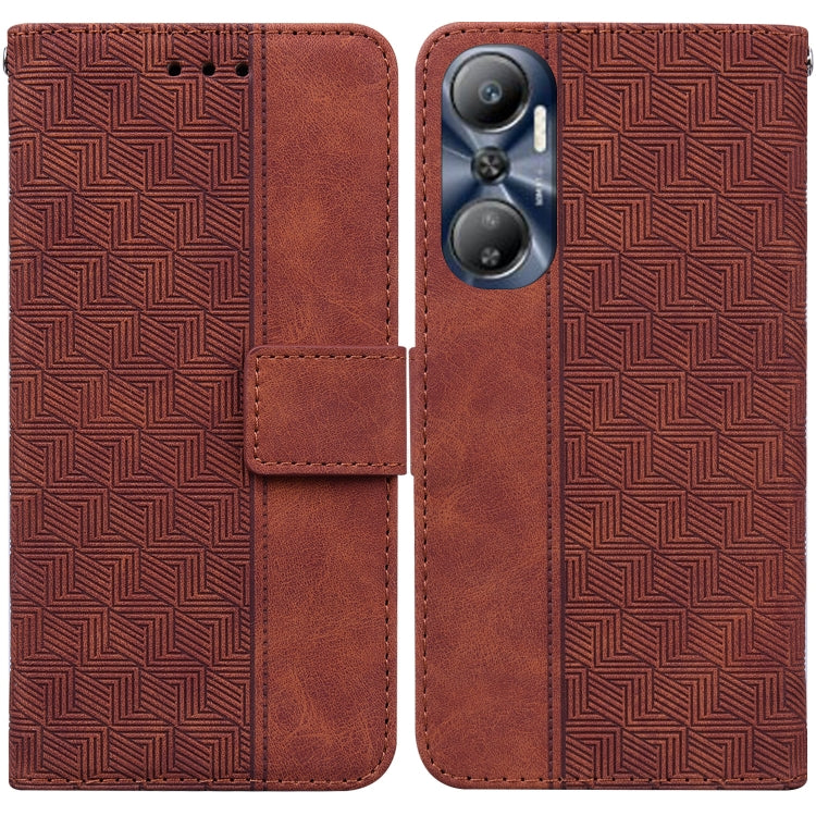 Funda de Teléfono Infinix Hot 20 Cuero con Relieve Geométrico (Marrón)