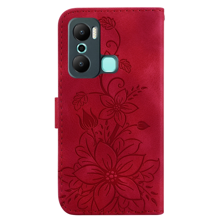 Estuche para Teléfono Infinix Hot 20 Play Lily de Cuero en Relieve (Rojo)