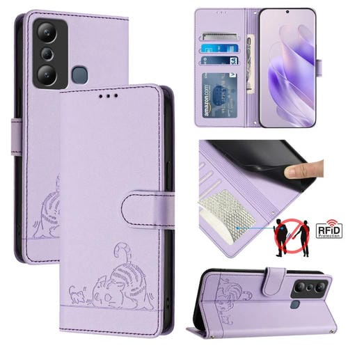 Estuche para Teléfono Infinix Hot 20I X665E Cuero RFID con Patrón en Relieve y Cordón (Púrpura)