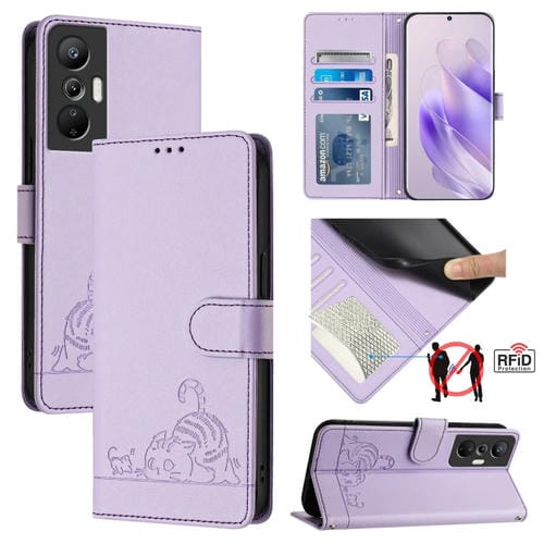 Estuche para Teléfono Infinix Hot 20S 20 Pro Cuero Rfid Patrón En Relieve con Cordón (Púrpura)