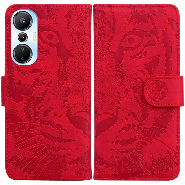 Funda de Cuero para Infinix Hot 20S con Estampado de Tigre en Relieve (Rojo)