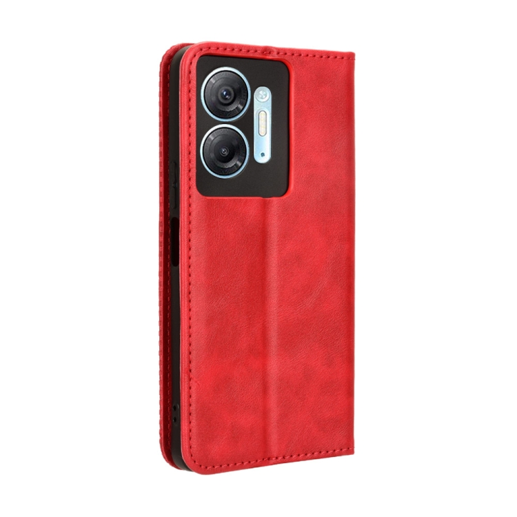 Funda para Teléfono Infinix Hot 30 5G X6832 Cuero Textura Retro con Hebilla Magnética (Rojo)