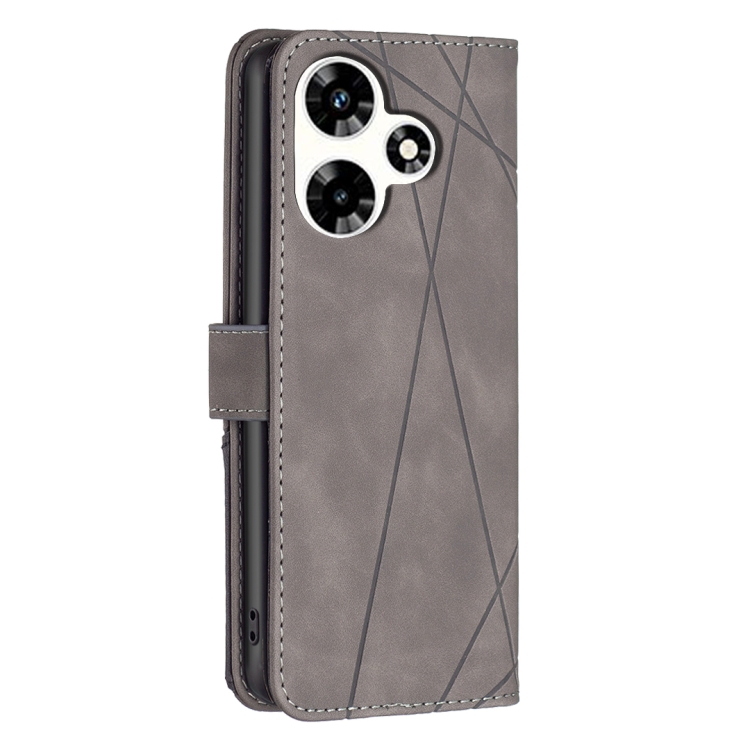 Funda para Teléfono Infinix Hot 30 Cuero Textura de Rombo Hebilla Magnética (Gris)