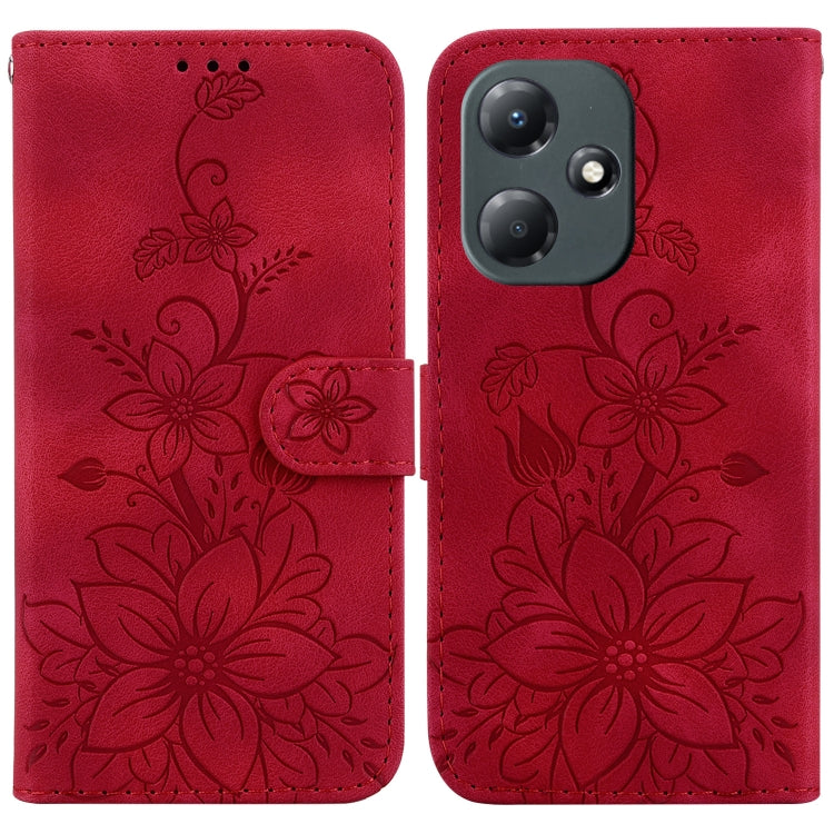 Estuche para Infinix Hot 30 Play X6835 de Cuero con Relieve de Lirio (Rojo)