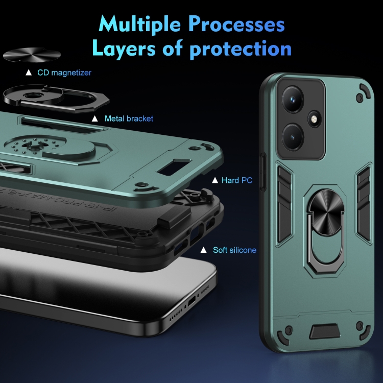 Funda para Infinix Hot 30I con Soporte de Anillo de Metal a Prueba de Golpes (Verde)