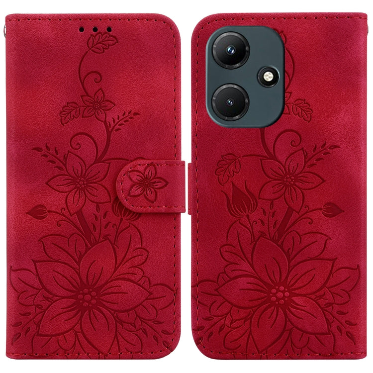 Funda para Teléfono Infinix Hot 30I X669C de Cuero con Relieve Lily (Rojo)