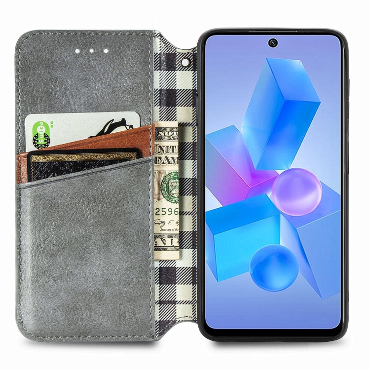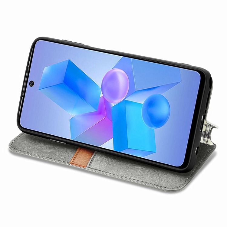 Funda de Cuero Magnético Prensado para Infinix Hot 40 4G (Gris) Cubic Grid